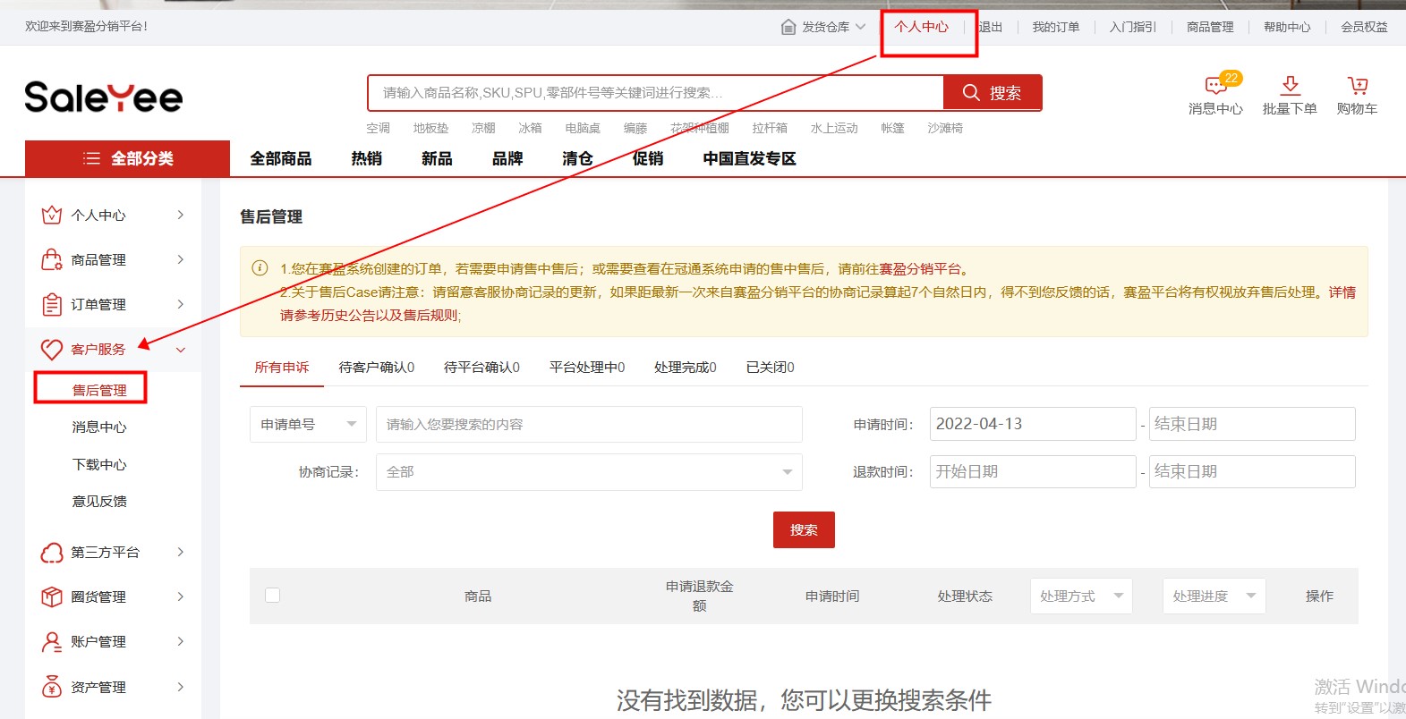 3、最后,为方便高效沟通,如果您是要处理售后相关的问题,请您先查看我们的售后规则(点此查看 >>)后再于“个人中心-客服服务-售后管理”发起售后申请,