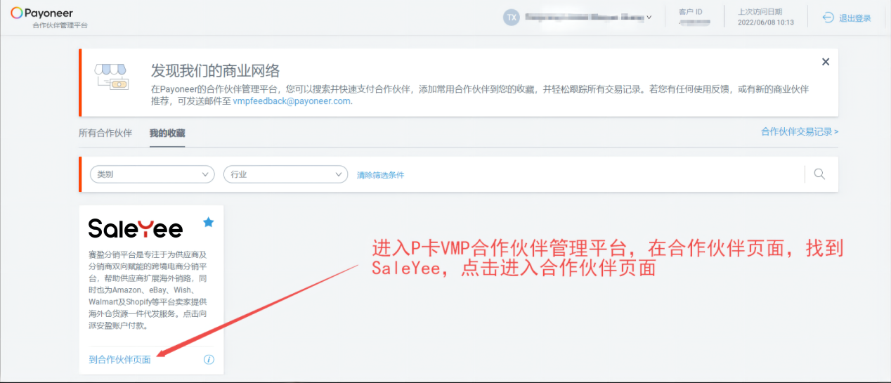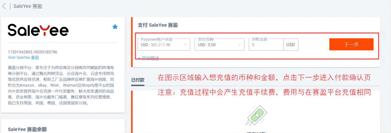 如何用Payoneer VMP合作伙伴功能,充值赛盈账户余额?