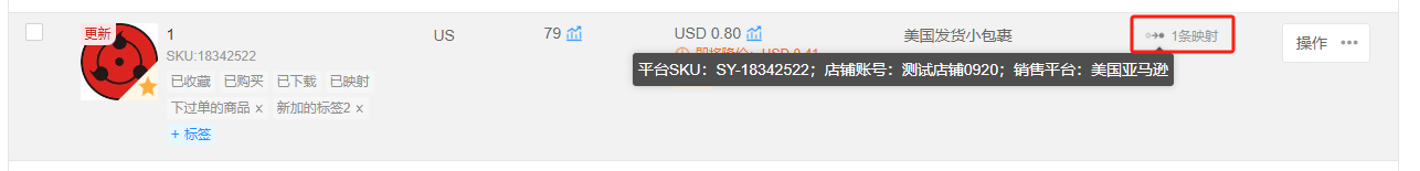 本次功能升级将有创建映射的商品加入此列表以供您一起管理。有映射的商品在表格中会显示映射数量,鼠标悬停时会提示映射详情。