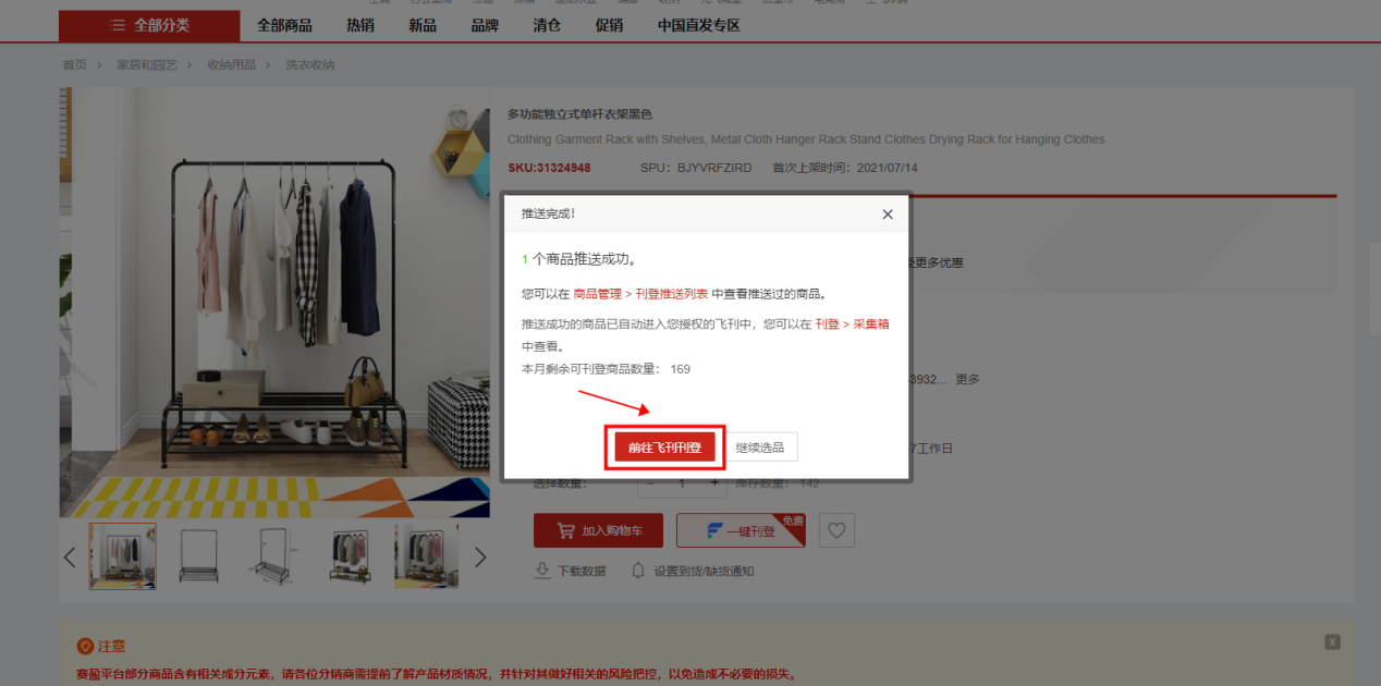 二、赛盈分销平台上如何查看成功推送到飞刊的商品?