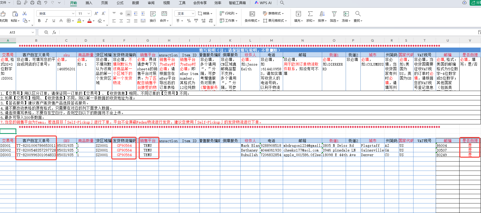 4.上传文件后,您可以根据以下区域的信息确认订单是否上传成功。若失败,则需排查填写格式及内容是否有误。若排查均无填写问题,仍然无法上传,请联系您的业务经理进行处理。