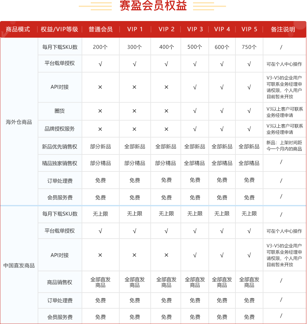 (6)中国直发专区的商品,采用统一分销价格,均不享受赛盈会员权益折扣;产生于中国直发专区的商品订单销售额,均不纳入赛盈会员升级系统。